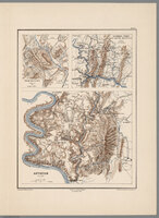Maps were made by Vorzet to accompany Louis Phillipe d'Orleans' (Comte de Paris) multivolume "Histoire de la Guerre Civile en Amérique". The set includes two (of three) of the original fascicle covers (this was issued in parts, and often bound later). The first fascicle was from 1874. The fascicles were issued to accompany vols. 1-2, 3-4. and 5-6 respectively of the "Histoire." The Comte de Paris was a pretender to the throne of France, and expatriate, working as an aide-de-camp to the Union Gen. George MacClellan (McClellan). He eventually settled in England. Pub Date is the latest date of the maps published over time for this series. Looseleaf in two (of the original three) paper light green fascicles. Maps are color; chromolithographs. The atlas was provided for digitization by Joel Kovarsky, and has since been donated to the Albert and Shirley Small Special Collections Library of the University of Virginia.