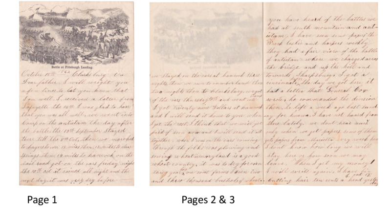 - Summary of movements after Antietam, mentions the newspapers Frank Leslie and Harper’s Weekly. Writer wants to send all his money home, This item includes images of original letter, and a transcription.