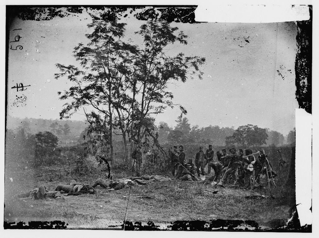 - Image of soldiers burying the dead at Antietam