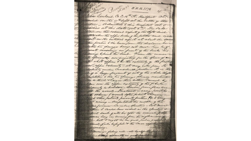 - Three day log of patient surgeon was overseeing. Notes of improvements, downturn, and ultimate death of patient from limb removal. This item includes an image of original entries, a transcription,