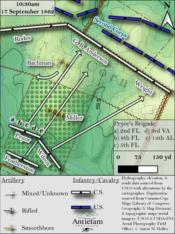 - Map depicting Pryor’s Florida brigade’s advance from the Piper farm lane to the Bloody Lane at approx. 10:30am, 17 Sept. 1862.