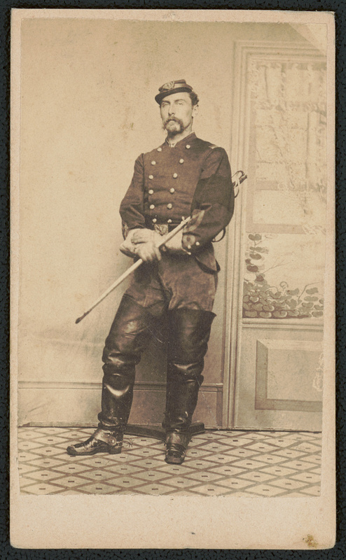 - Colonel Cleveland Winslow of Co. K, 5th New York Infantry Regiment and 5th New York Veterans Infantry Regiment in uniform with sword in front of backdrop showing window