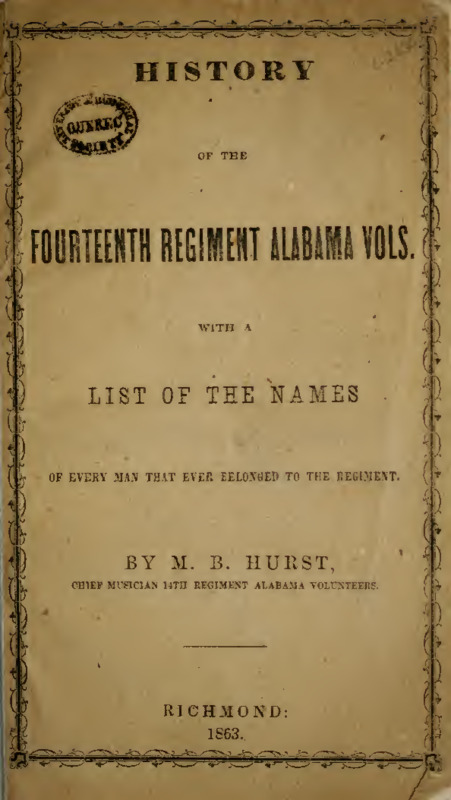 - A narrative history of the Fourteenth Alabama Volunteer Infantry Regiment and their exploits during the Civil War